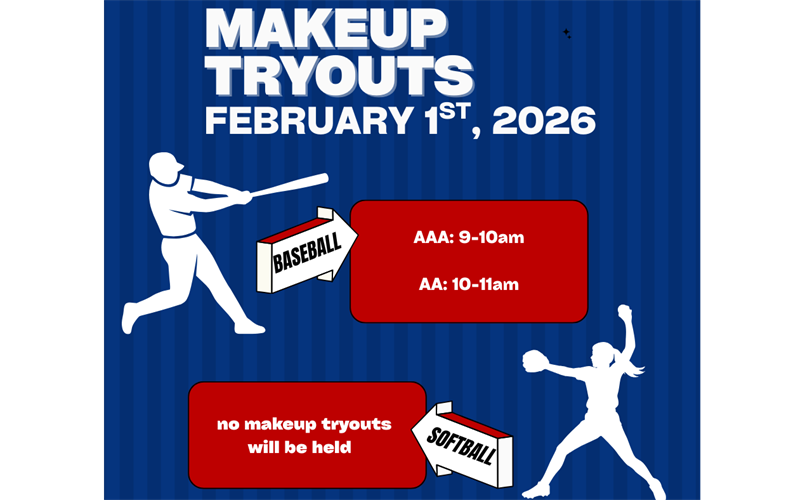 AA and AAA baseball will hold makeup tryouts on Sunday 2/1/2026 at the ESLL Fields if you missed tryouts on 1/24/26.